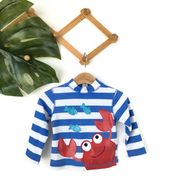 Toddler Boys Cartoon Crab Striped Swimsuitชุดว่ายน้ำเด็กผู้ชายลายการ์ตูนปู